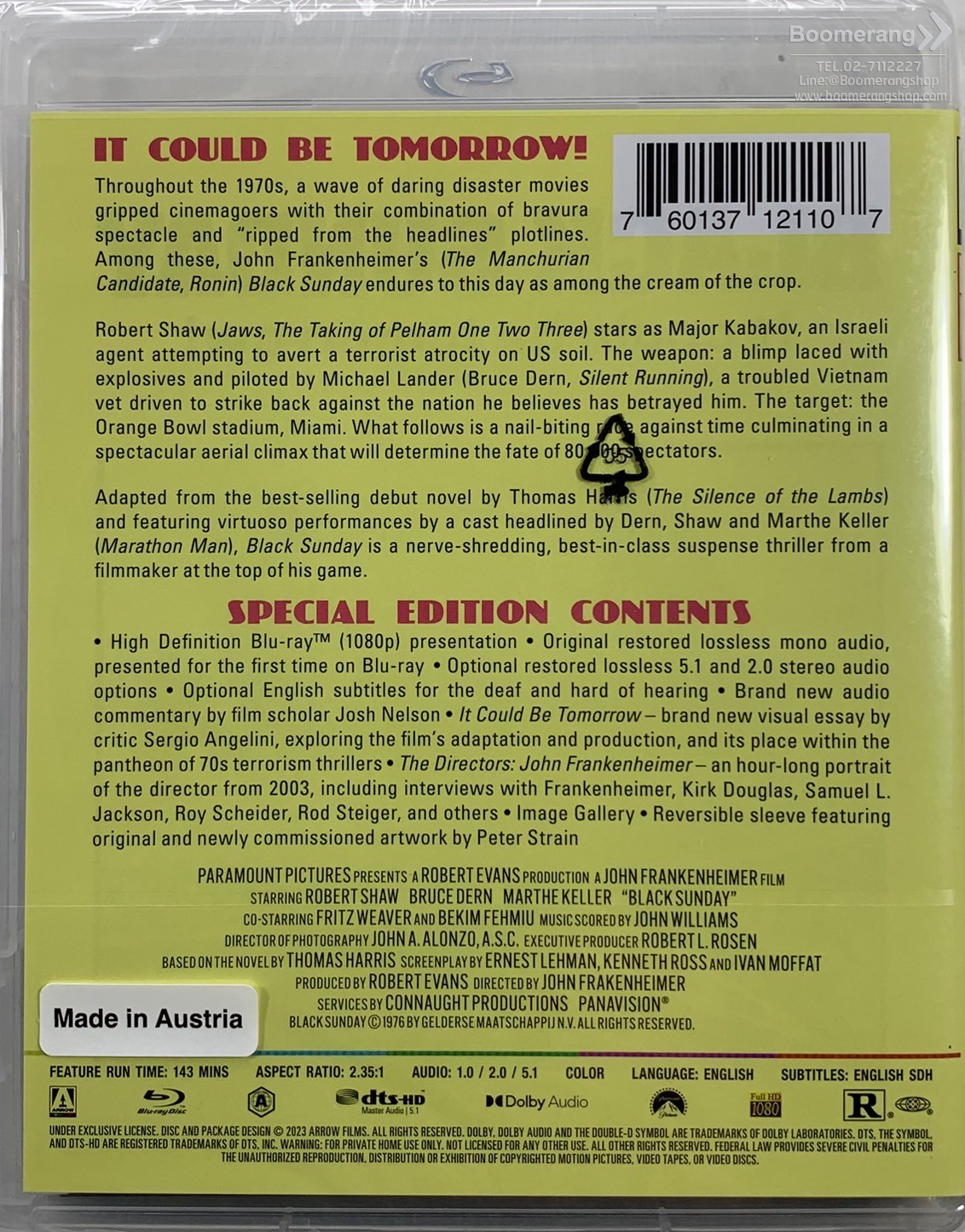 HomeProductProduct Detail Browse Blu-ray CategoryNew ReleaseBest SellersComing Soon Newsletter Keep up-to-date with new releases and great offers Click for larger image and over views พบข้อมูลผิด แจ้งที่นี่! สั่งซื้อหรือสอบถามข้อมูลเพิ่มเติมผ่านไลน์แอด คลิกที่นี่ Black Sunday (USAมีสต็อกBD) Format: Blu-ray UPC: 0760137121107 Product Status Shipping & Pickup Checking stock... SRP (Baht) : 2,240.00 Our Price (Baht) : 1,599.00 Click to see shopping cartdetails or checkout. Release Date : 28/03/2023 Distributor : Import ค้นหา สินค้าทุกประเภท 4K-UHD Blu-ray DVD CD Vinyl Hardware Game Merchandise Books ชื่อเรื่อง บาร์โค้ด ASIN