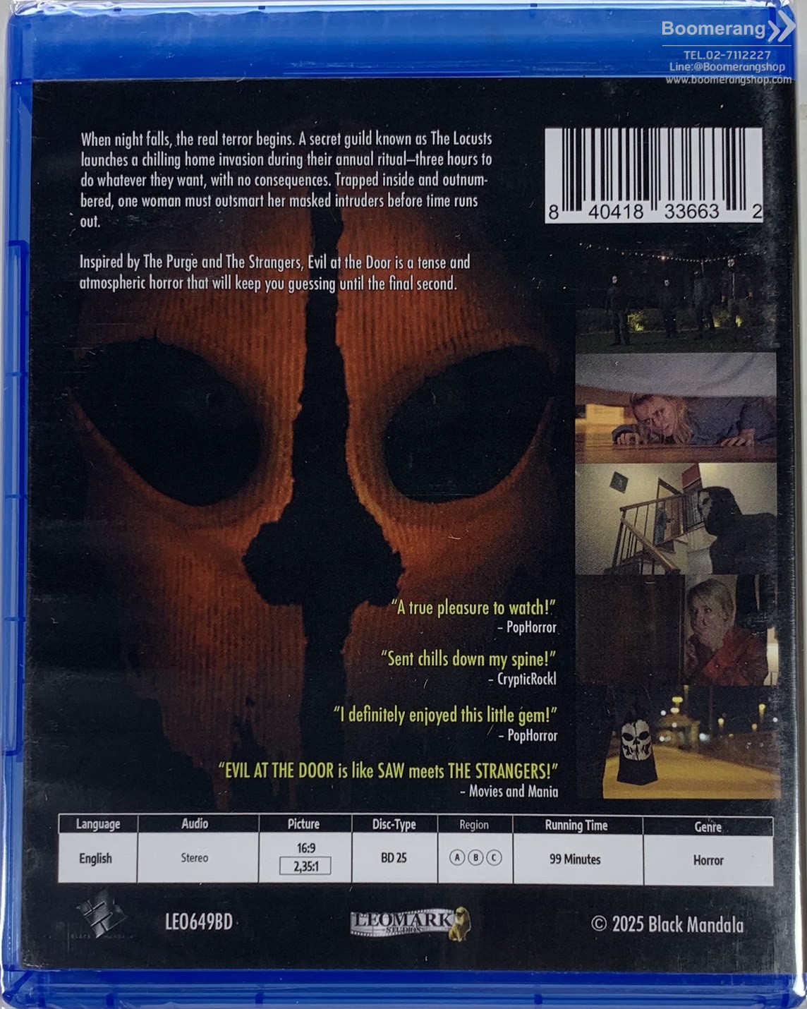 HomeProductProduct Detail Browse Blu-ray CategoryNew ReleaseBest SellersComing Soon Newsletter Keep up-to-date with new releases and great offers Click for larger image and over views พบข้อมูลผิด แจ้งที่นี่! สั่งซื้อหรือสอบถามข้อมูลเพิ่มเติมผ่านไลน์แอด คลิกที่นี่ Evil At The Door Format: Blu-ray UPC: 0840418336632 Product Status Shipping & Pickup Checking stock... SRP (Baht) : 1,730.00 Our Price (Baht) : 1,239.00 Click to see shopping cartdetails or checkout. Release Date : 16/09/2025 Distributor : Import ค้นหา สินค้าทุกประเภท 4K-UHD Blu-ray DVD CD Vinyl Hardware Game Merchandise Books ชื่อเรื่อง บาร์โค้ด ASIN