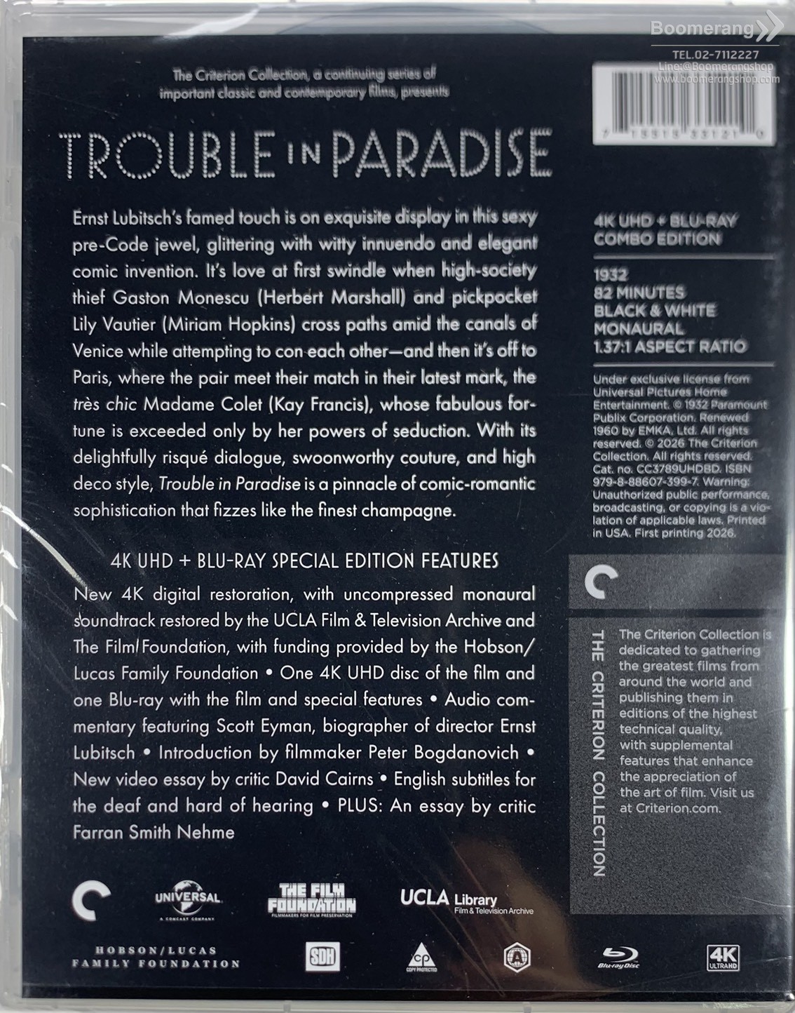 Trouble In Paradise (Criterion Collection) (USAมีสต็อกUHD) | BoomerangShop.com - Thailand Online Blu-Ray, DVD, CD Store