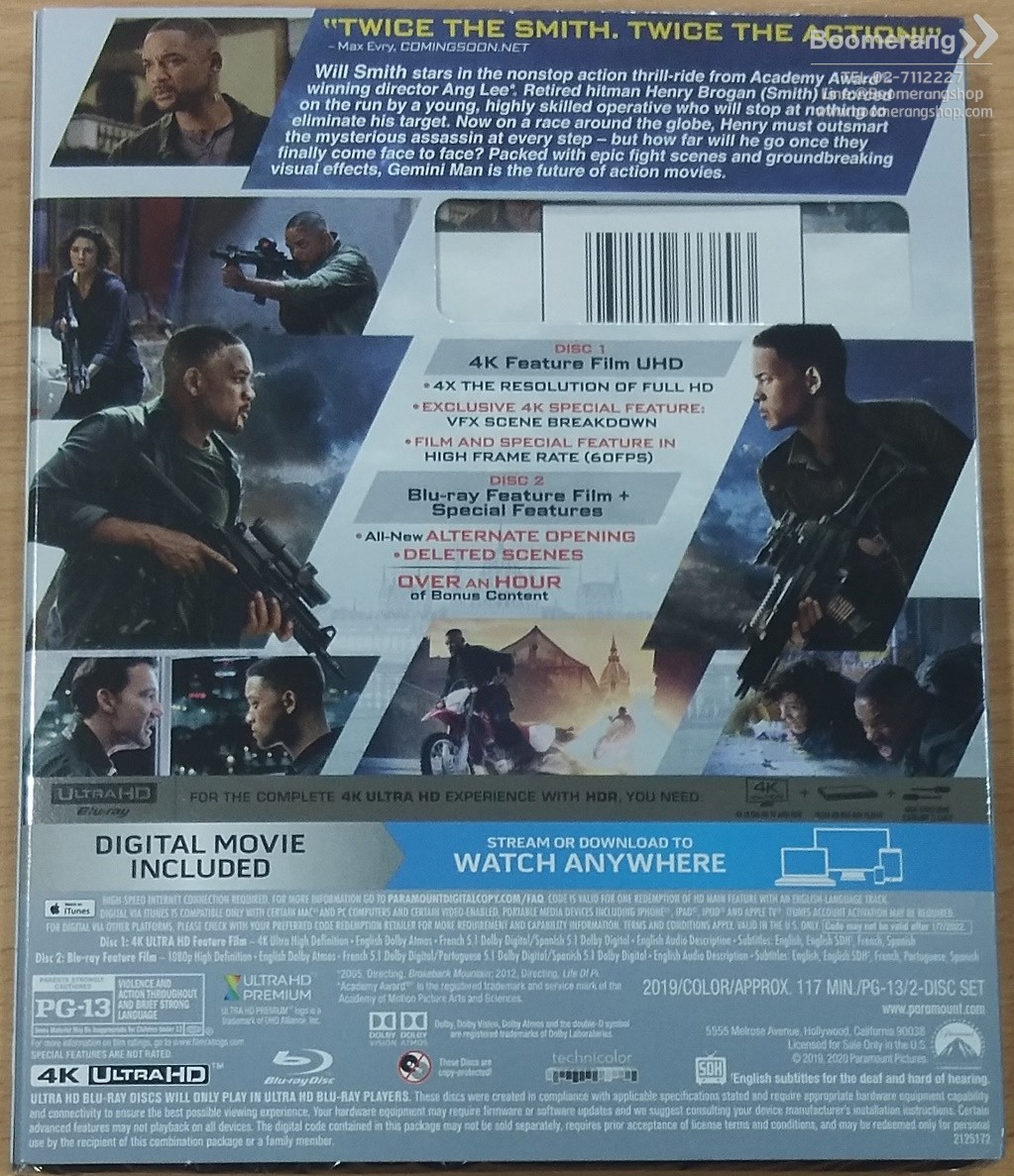 Gemini Man (2019) (4K Ultra HD + Blu-ray + Digital) (มีเสียงไทย มีซับไทย) (USAมีสต็อกUHD)