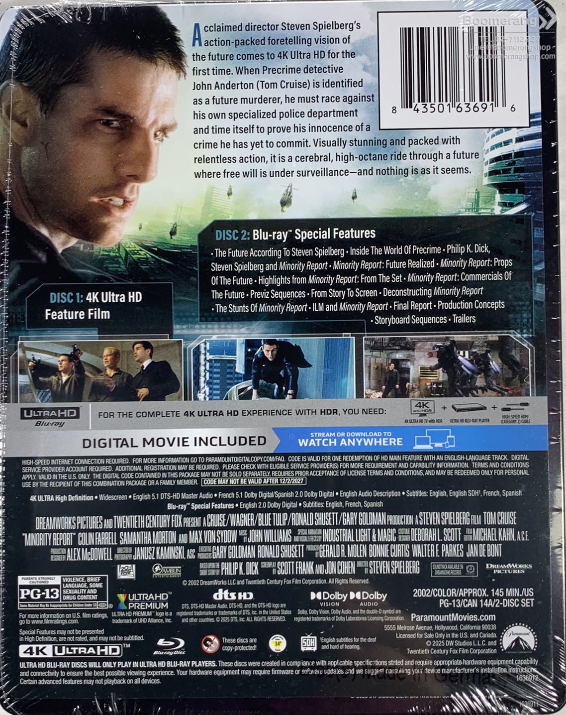 Minority Report (Steelbook) | BoomerangShop.com - Thailand Online Blu-Ray, DVD, CD Store