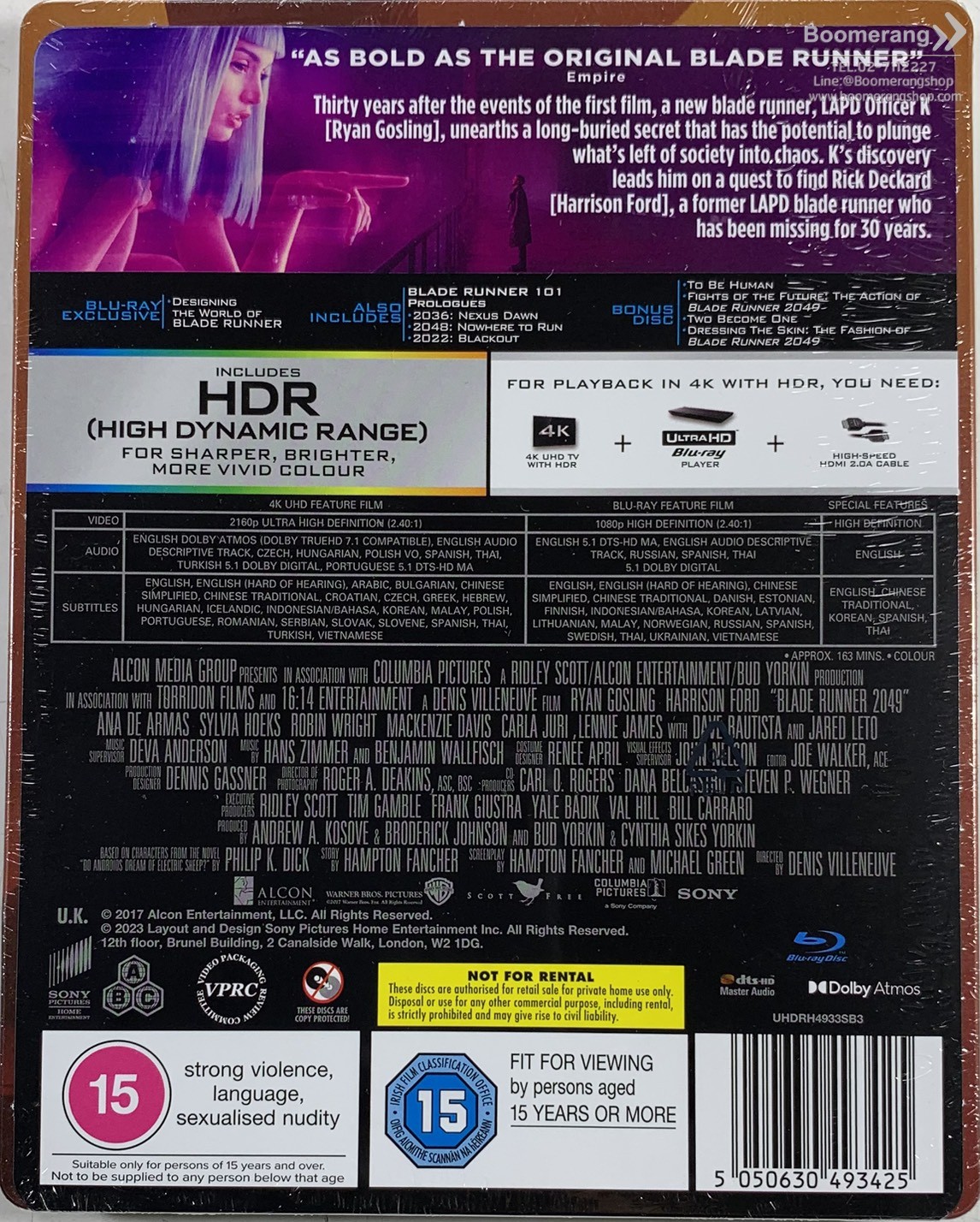HomeProductProduct Detail Browse CategoryDVDBlu-rayCDVinylGameMerchandiseBooksHardware Newsletter Keep up-to-date with new releases and great offers Click for larger image and over views พบข้อมูลผิด แจ้งที่นี่! สั่งซื้อหรือสอบถามข้อมูลเพิ่มเติมผ่านไลน์แอด คลิกที่นี่ Blade Runner 2049 - Deluxe Format: 4K-UHD UPC: 5050630493425 Product Status Shipping & Pickup Checking stock... SRP (Baht) : 3,440.00 Our Price (Baht) : 2,459.00 Click to see shopping cartdetails or checkout. Release Date : 14/11/2025 Distributor : Import ค้นหา สินค้าทุกประเภท 4K-UHD Blu-ray DVD CD Vinyl Hardware Game Merchandise Books ชื่อเรื่อง บาร์โค้ด ASIN