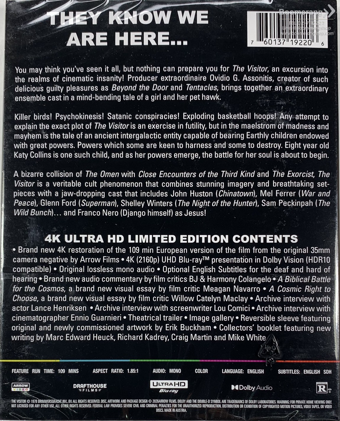 HomeProductProduct Detail Browse CategoryDVDBlu-rayCDVinylGameMerchandiseBooksHardware Newsletter Keep up-to-date with new releases and great offers Click for larger image and over views พบข้อมูลผิด แจ้งที่นี่! สั่งซื้อหรือสอบถามข้อมูลเพิ่มเติมผ่านไลน์แอด คลิกที่นี่ Visitor (USAมีสต็อกUHD) Format: 4K-UHD UPC: 0760137192206 Product Status Shipping & Pickup Checking stock... SRP (Baht) : 2,480.00 Our Price (Baht) : 1,769.00 Click to see shopping cartdetails or checkout. Release Date : 17/02/2026 Distributor : Import ค้นหา สินค้าทุกประเภท 4K-UHD Blu-ray DVD CD Vinyl Hardware Game Merchandise Books ชื่อเรื่อง บาร์โค้ด ASIN